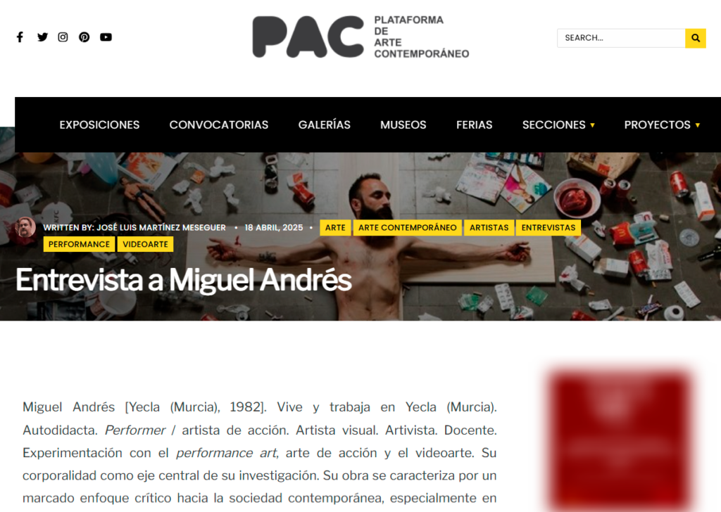 En la entrevista hablo del arte y la performance como una necesidad vital, no como un lugar de éxito o reconocimiento, sino como un espacio de supervivencia, de resistencia y de sentido. Mi práctica nace del cuerpo, de la experiencia vivida, de la fragilidad, del deseo y también del conflicto. El cuerpo aparece como territorio político, como archivo de tensiones sociales y como herramienta para pensar el mundo que habitamos.